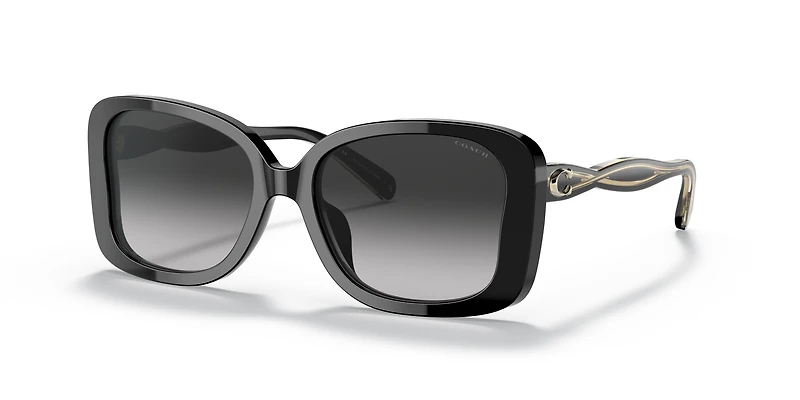Elevate your style with the Coach HC8334U C7994 sunglasses, a bold nod to retro glamour. The butterfly-shaped full-rim frames showcase a sophisticated black finish, perfectly paired with gradient grey lenses for effortless elegance. Crafted from acetate, the temples offer a lightweight feel for all-day comfort. Designed with a universal fit, these black butterfly sunglasses exude timeless charm while providing advanced protection against UVA/UVB rays.