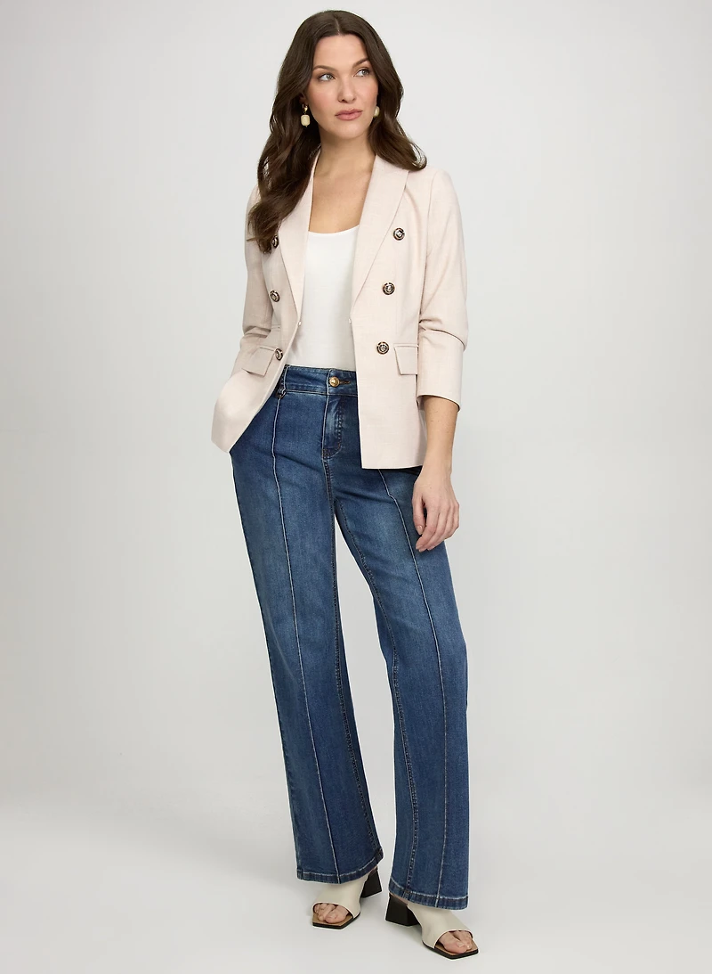 Heathered Blazer & Pinched Seam Flare-Leg Jeans