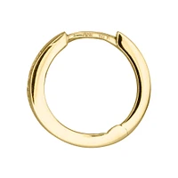 These sleek and stylish hassle-free diamond hoop earrings go perfectly with any outfit. The 14 channel set round diamonds add just the right amount of sparkle, while the smooth channel settings add warmth while hugging the diamonds in 10 carat yellow gold. Designed in Canada, these diamond hoop earrings have a total d