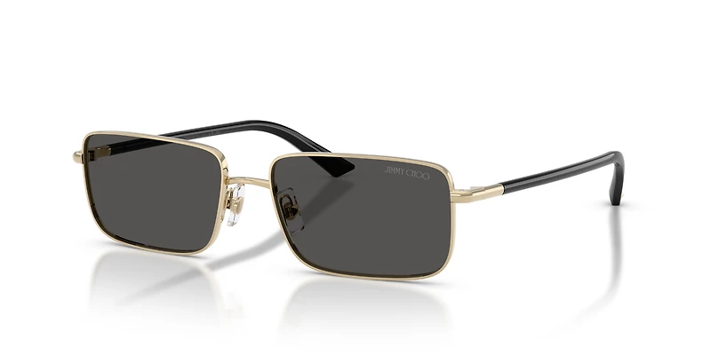 Elevate your style with Jimmy Choo sunglasses like the JC4027 model. These sleek rectangular frames in polished gold metal embody refined elegance. Designed with signature details like lasered rims, JC nose pads, and studded temples, they offer a perfect blend of sophistication and individuality. The classic grey lenses complete the timeless look while ensuring optimal protection.