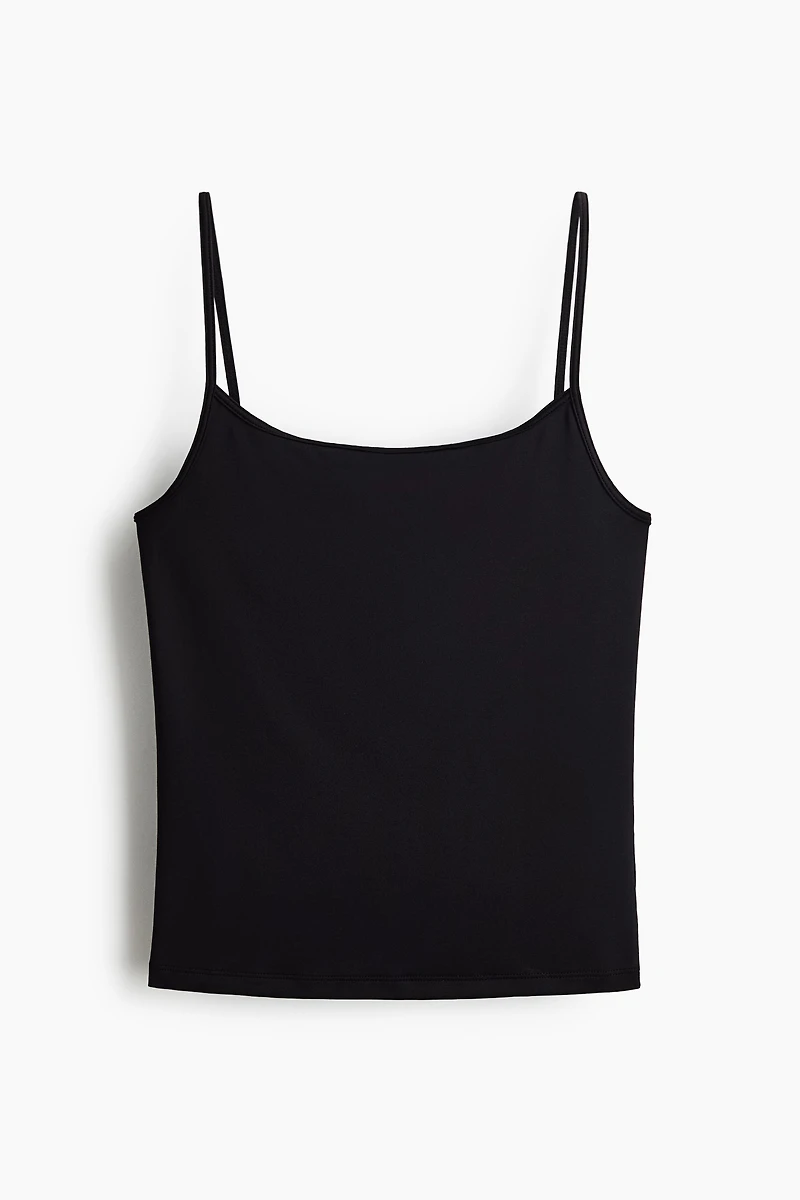 Fitted strappy top in stretch jersey with a scoop neckline and narrow shoulder straps.