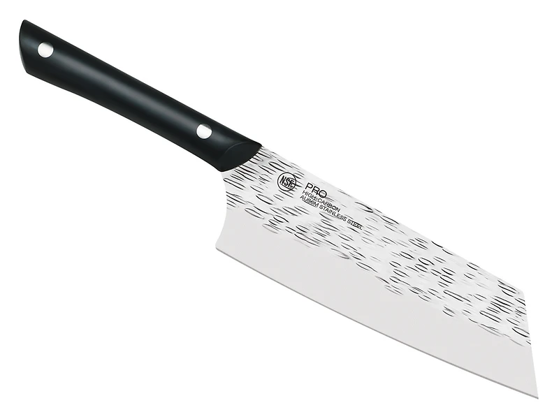 Bring professional-level performance to your kitchen with Kai PRO. NSF Certified for use in professional kitchens, Kai PRO cutlery offers a razor-sharp edge, comfortable grip, precision handling—and is built to stand up to the rigors of commercial use. Kai PRO blades are made of Japanese AUS6M stainless steel, hand sharpened and finished to a 16° cutting edge on each side—much sharper than standard Western-style knives. Our high-carbon steel offers excellent corrosion resistance, holds its edge well, then re-sharpens easily when needed. With its striking, hammered blade finish, Kai PRO is sure to be a standout in any kitchen, home or commercial. The knife’s beautiful finish isn't just for show; it reduces drag and helps food release from the blade quickly and easily. Full-tang construction and a riveted POM handle ensure Kai PRO cutlery will provide you with a lifetime of pro-level performance.