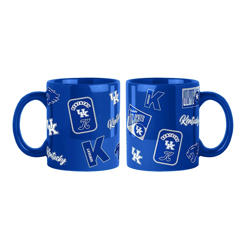 Elevate your game day mornings with this Kentucky Wildcats 2-Pack 15oz. Mug Set, perfect for showing off your team pride while enjoying your favorite beverage. Each mug features allover printed graphics, showcasing your unwavering support for the Kentucky Wildcats. With a comfortable four-finger handle and durable ceramic construction, this set is both dishwasher and microwave-safe, combining convenience with team spirit.