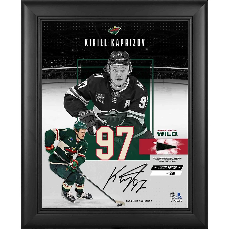 Kirill Kaprizov Minnesota Wild Facsimile Signature Framed 11" x 14" Impact Collage with a Piece of Game-Used Puck - Limited Edition of 250