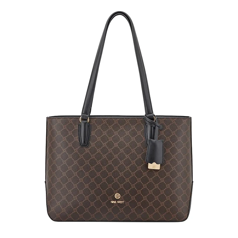 Sharpen your look with the Lakelyn Tote Bag by Nine West. This sophisticated tote is designed to complement your polished ensembles for formal occasions, offering a sleek and structured silhouette that brings a refined touch to your outfit. With its practical zipper closure and thoughtfully designed pockets, it combines style and function to carry your essentials with confidence and ease.