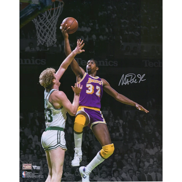 Magic Johnson Los Angeles Lakers Autographed 11'' x 14'' Dunk vs. Larry Bird Spotlight Photograph