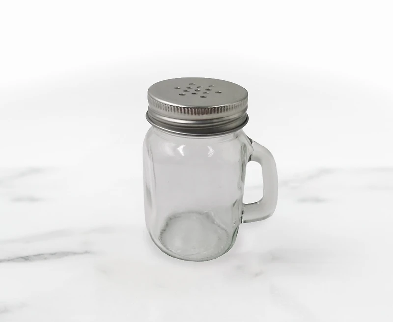 Store and dispense spices with ease using this durable glass jar. Features a handle and perforated lid. Dishwasher-safe. Shop now!