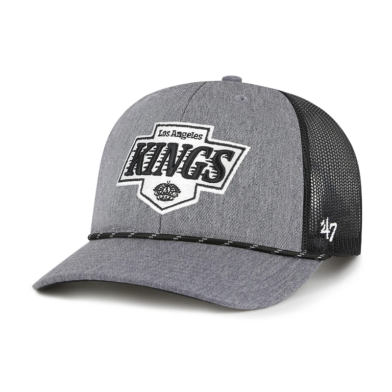 Show off your timeless Los Angeles Kings pride with this Carbon Rope Trucker Adjustable Hat from '47. This trucker cap features a classic design with a cotton twill front, breathable mesh back, and a slightly curved brim, making it a stylish and comfortable choice for any Los Angeles Kings fan. The rope embellishment on the visor and contrast-color undervisor add a touch of vintage flair, while the embroidered team logo proudly displays your Los Angeles Kings pride.