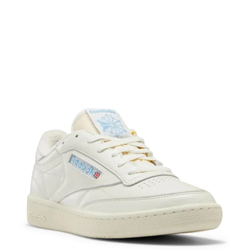 Classic and minimalist, these men's Reebok Club C Vintage chalk/alabaster/essential blue athleisure shoes are wardrobe staples. Inspired by '80s court style, these