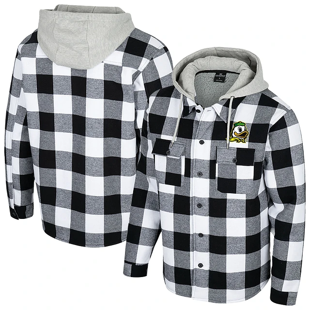 Men's Colosseum Black/White Oregon Ducks Buffalo Plaid Full-Zip Jacket