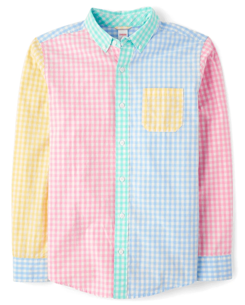 Mens Dad And Me Gingham Colorblock Poplin Button Up Shirt - Garden Party