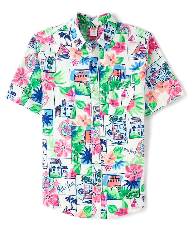 Mens Dad And Me Vacation Linen-Blend Button Up Shirt - Italian Riviera