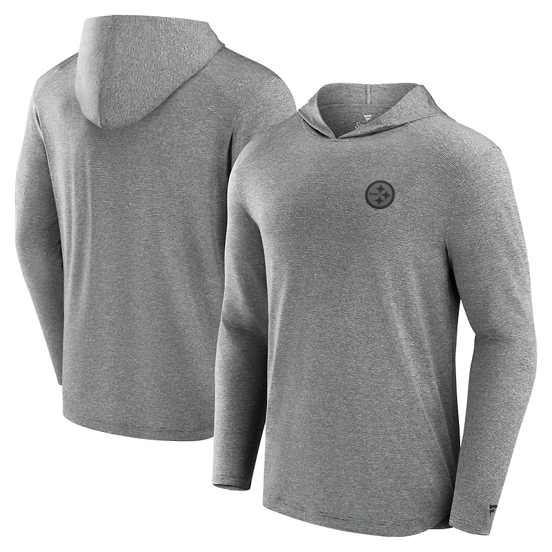 Make moves in this Pittsburgh Steelers Front Office Tech Lightweight Hoodie T-Shirt by Fanatics. It's crafted from stretchy stripe jersey fabric that allows for more comfortable movement. The understated Pittsburgh Steelers logo complements the neutral look, providing a versatile top.
