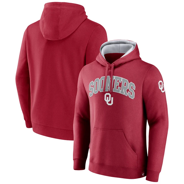 Men's Fanatics Crimson Oklahoma Sooners Arch & Logo Tackle Twill Pullover Hoodie