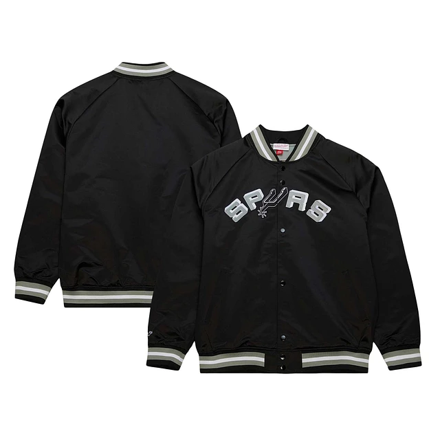 Men's Mitchell & Ness Black San Antonio Spurs Hardwood Classics Throwback Wordmark Raglan Full-Snap Jacket