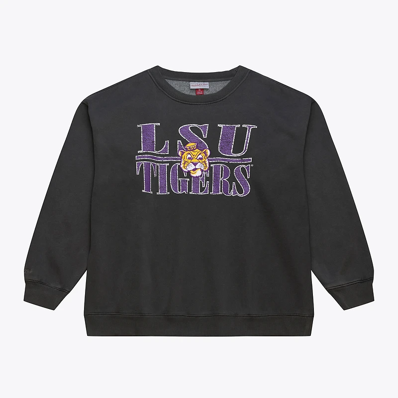 It's not often you see team apparel that blends modern style with a vintage aesthetic. This LSU Tigers Downtown Fleece Sweatshirt from Mitchell & Ness captures that elusive combination perfectly. The distressed details and embroidered fabric applique on the front give it a worn-in, lived-in feel, while the bold team graphics ensure your team pride is on full display. The fleece lining provides added warmth and a soft feel, making it ideal for moderate temperatures. Finished with a rib-knit collar, cuffs, and hem, this midweight pullover is a comfortable and stylish way to support the LSU Tigers, whether you're at the stadium or hitting the town.