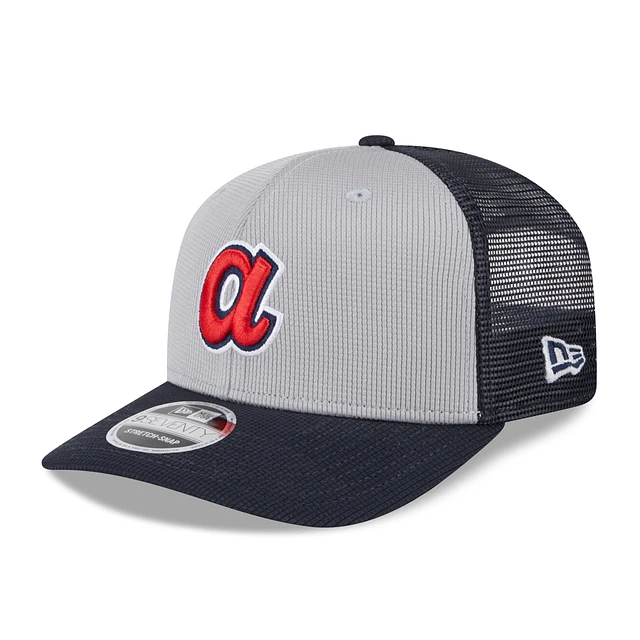 Men's New Era Gray/Black Atlanta Braves 2025 Batting Practice 9SEVENTY Stretch-Snap Trucker Hat