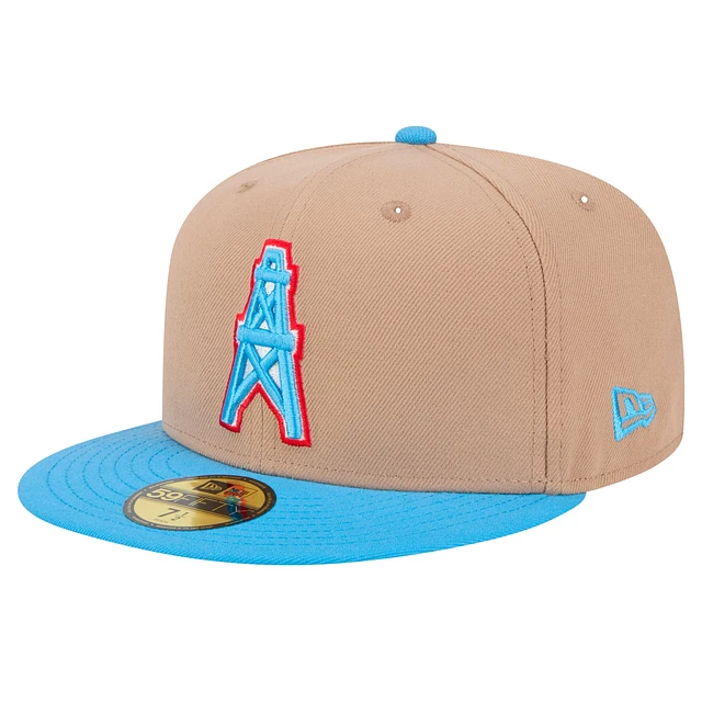 Men's New Era Tan Houston Oilers Gridiron Classics Throwback Logo Main 59FIFTY Fitted Hat