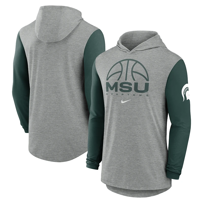 Men's Nike Gray/Green Michigan State Spartans Basketball Color-Block Tri-Blend Dri-FIT Long Sleeve Hoodie T-Shirt