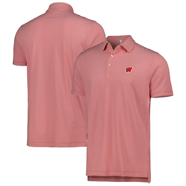 Men's Peter Millar Red Wisconsin Badgers Jubilee Stripe Performance Polo