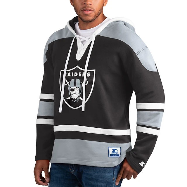 Men's Starter Black/Silver Las Vegas Raiders Lace-Up Pullover Hoodie
