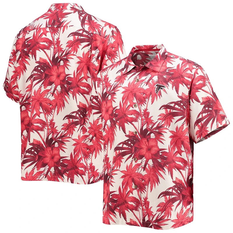 Men's Tommy Bahama Red Atlanta Falcons Sport Harbor Island Hibiscus Camp Button-Up Shirt