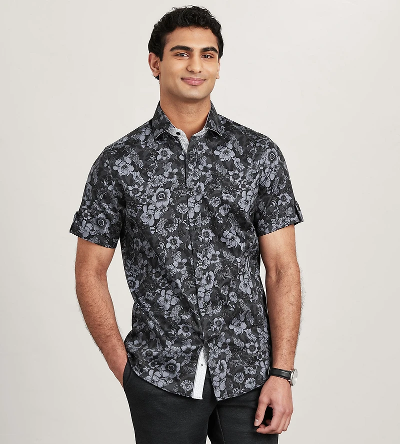 Modern Fit Short Sleeve Floral Pattern Casual Shirt