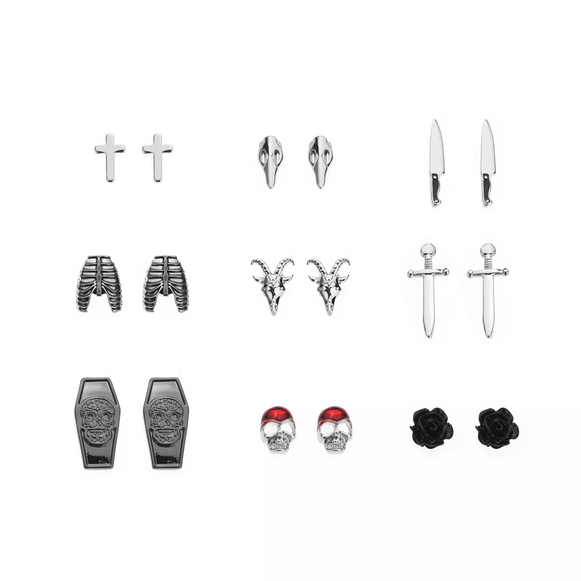 Multi-Pack Gothic Stud Earrings - 9 Pack