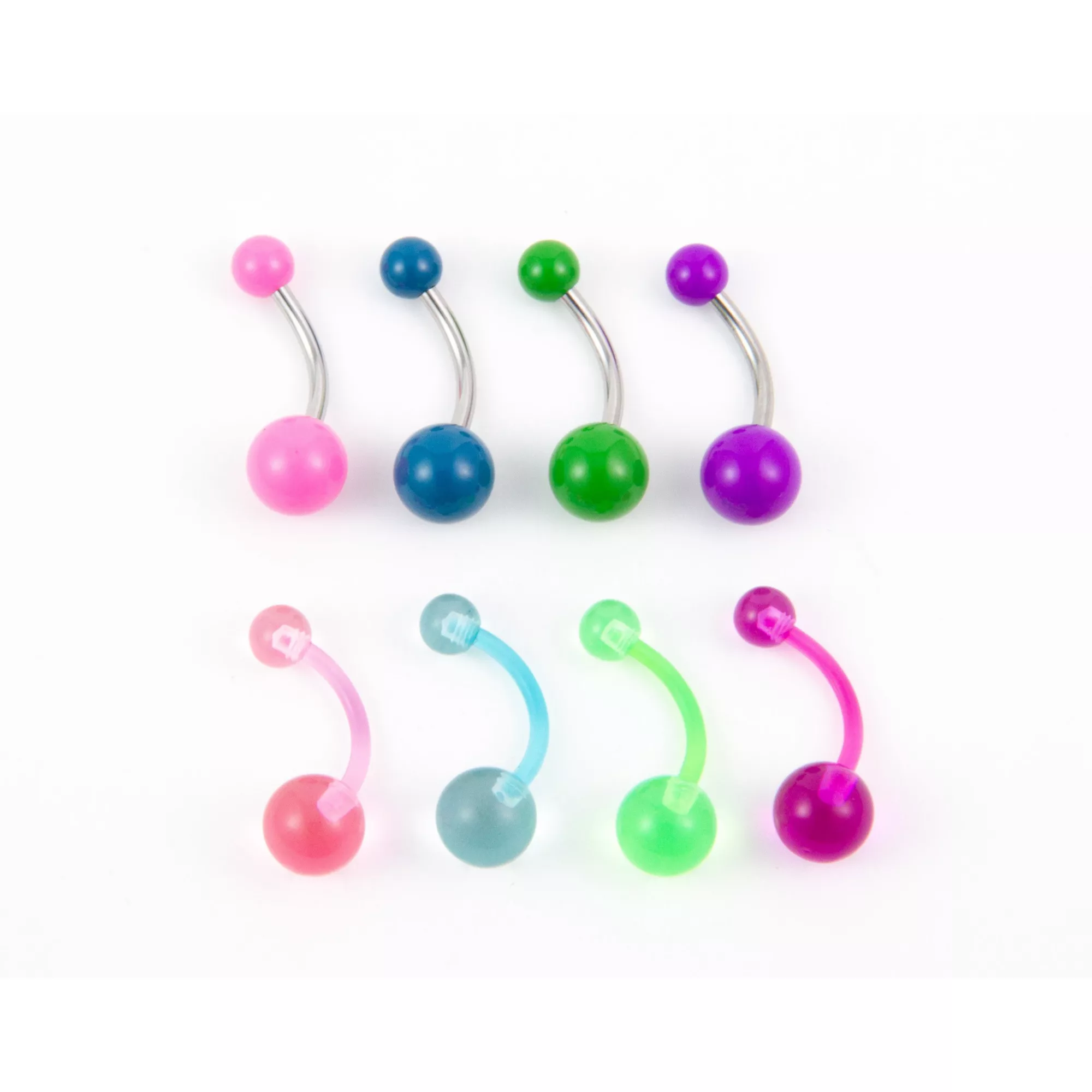 Multi-Pack Translucent and Solid Multicolor Belly Rings 8 Pack - 14 Gauge