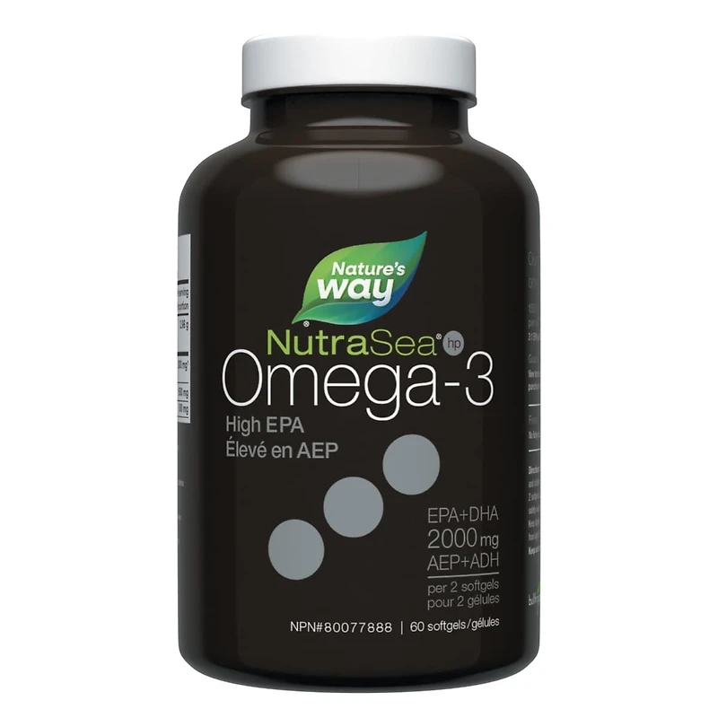 • NutraSea HP premium quality omega-3 liquid gels have a fresh mint flavour and no fishy burp-back. With a high EPA ratio of 1500 mg EPA and 500 mg DHA per dose, NutraSea HP is an easy way to get your omega-3 and is a great choice for anyone looking for a pure omega-3. NutraSea HP supports the maintenance of good health and brain function. It also helps support the development of the brain, eyes and nerves in children and adolescents. NutraSea HP is third-party tested for potency and purity through PureCheck. Nature’s Way contributes one percent of our total annual sales to Canadian land conservation organizations through our partnership with 1% for the Planet.