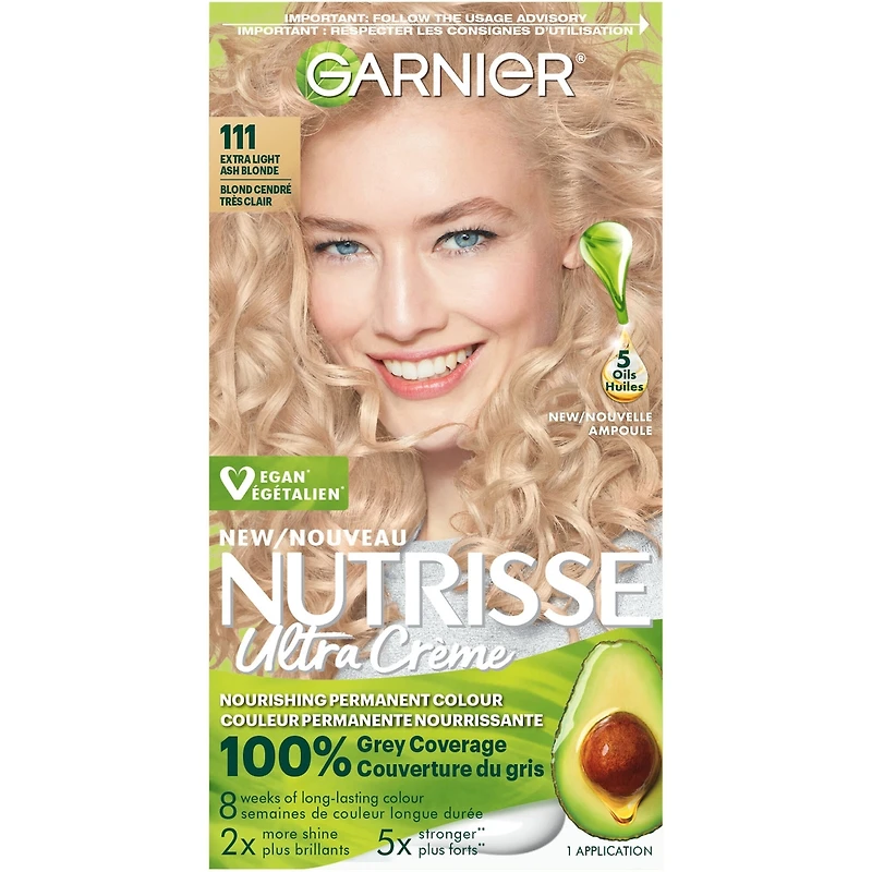 Garnier Nutrisse Ultra Crème delivers rich, natural colour that lasts up to 8 weeks, with up to 100% grey hair coverage. For all hair types and textures. Infused with responsibly sourced avocado, argan, coconut, olive, and shea oils, it deeply conditions while colouring, leaving your hair soft, shiny, and healthy. The non-drip vegan formula ensures easy application and even coverage. Achieve beautiful, radiant hair colour with Garnier Nutrisse Ultra Crème.