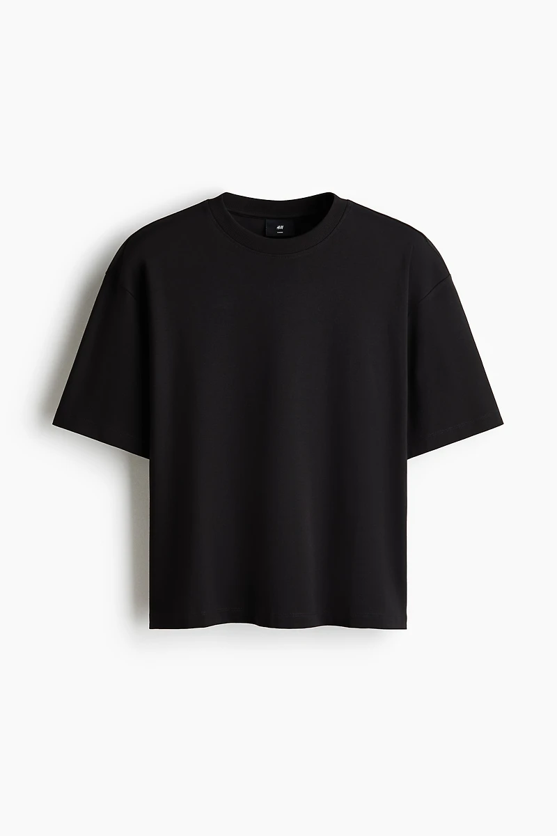 Boxy, oversized T-shirt in lightweight cotton jersey with an extra-loose silhouette. Ribbed round neck, dropped shoulders, and a straight-cut hem.