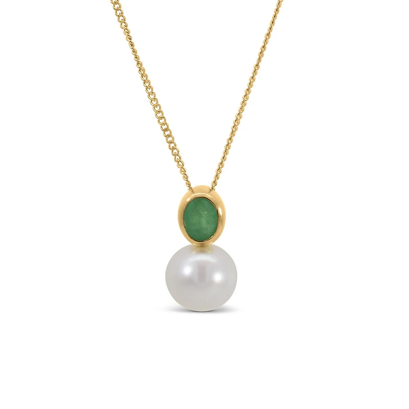 Pendant with 6.5mm Freshwater Pearl and Emerald in 10kt Yellow Gold with Chain