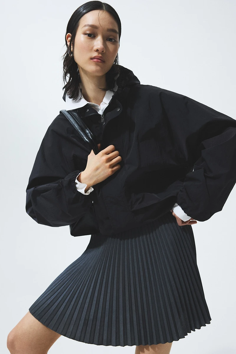 A-line mini skirt in pleated, woven fabric with an elasticized waistband.