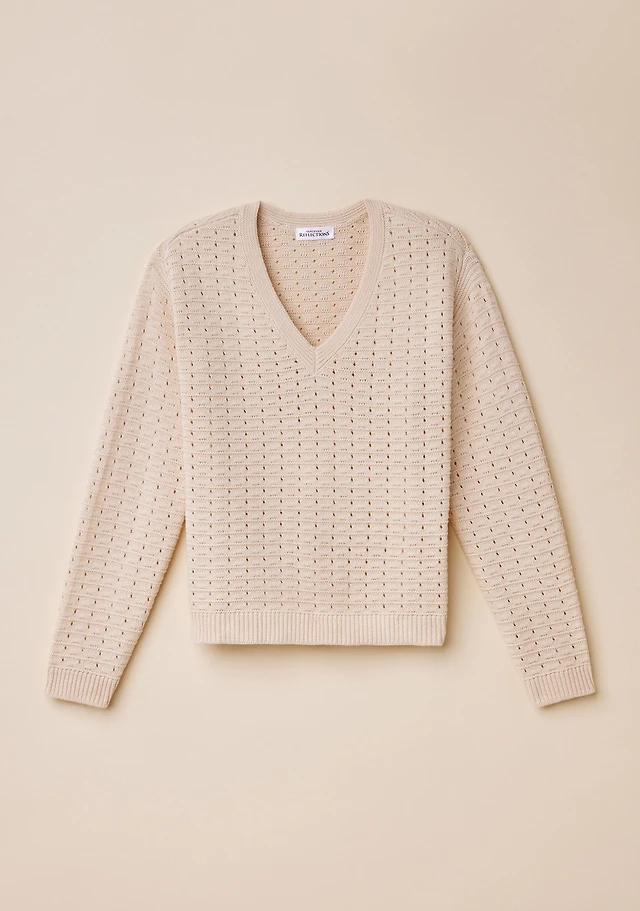 Ardene Cable Knit V-Neck Sweater in Off-White | Size Medium | Polyester | Eco-Conscious