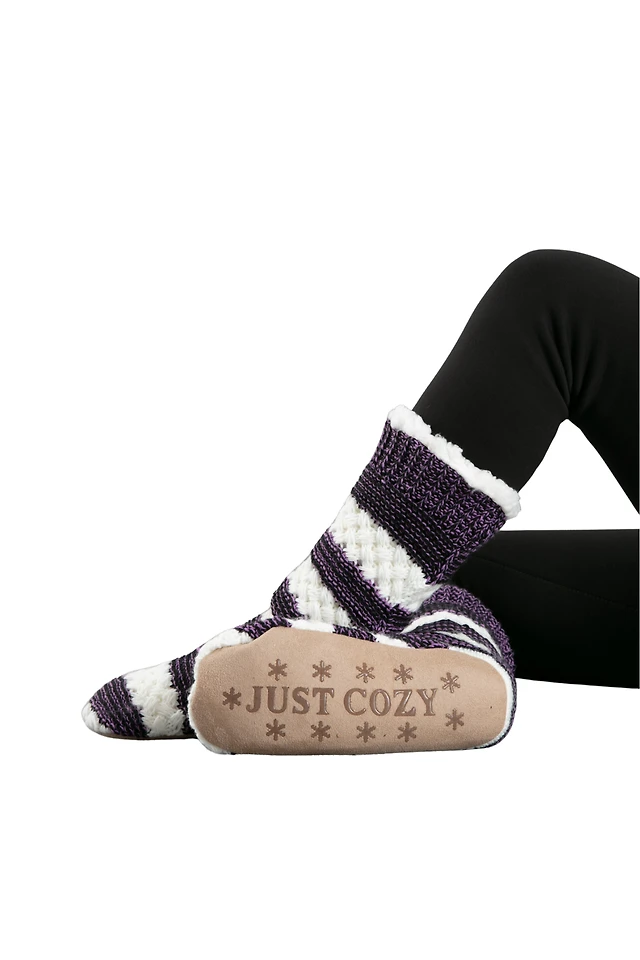 Purple & White - Cozy Slipper Socks
