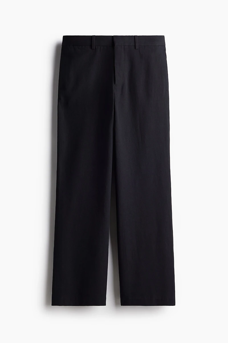 Regular-fit pants in an airy, woven cotton and linen blend with a comfortable, classic silhouette. Zip fly with concealed hook-and-eye fastening, side pockets, and welt back pockets with a button. Flared legs. Cotton and linen blends combine the softness of cotton with the sturdiness of linen, creating a beautiful, textured fabric that is breathable and perfectly draped.