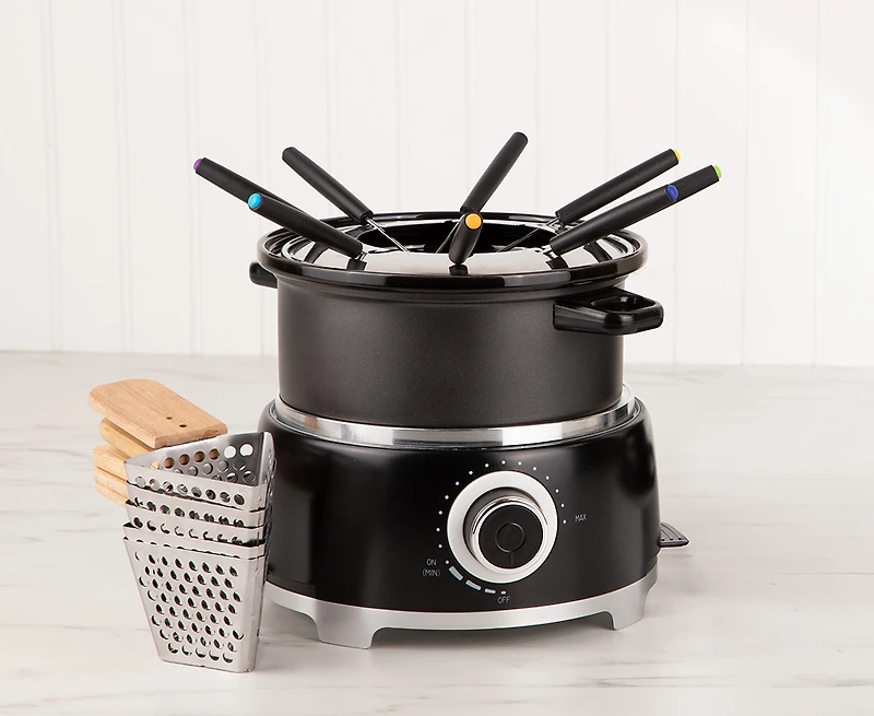 Enjoy fondue with this 2L electric set. Carbon steel pot, adjustable temperature, perfect for gatherings. Order now for delicious fun!