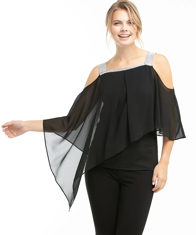 Rhinestone Trim Cape Overlay Top
