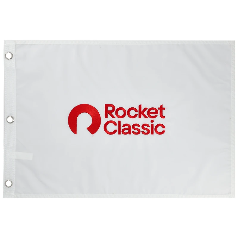 Show your support for golf's rising stars with this Rocket Classic 13.5" x 19.75" Embroidered Flag. This flag features vibrant embroidered graphics and a quad-stitched fly end, ensuring both beauty and durability on the green. With three sturdy metal grommets for secure attachment, this single-sided flag proudly displays your passion for the Rocket Classic.