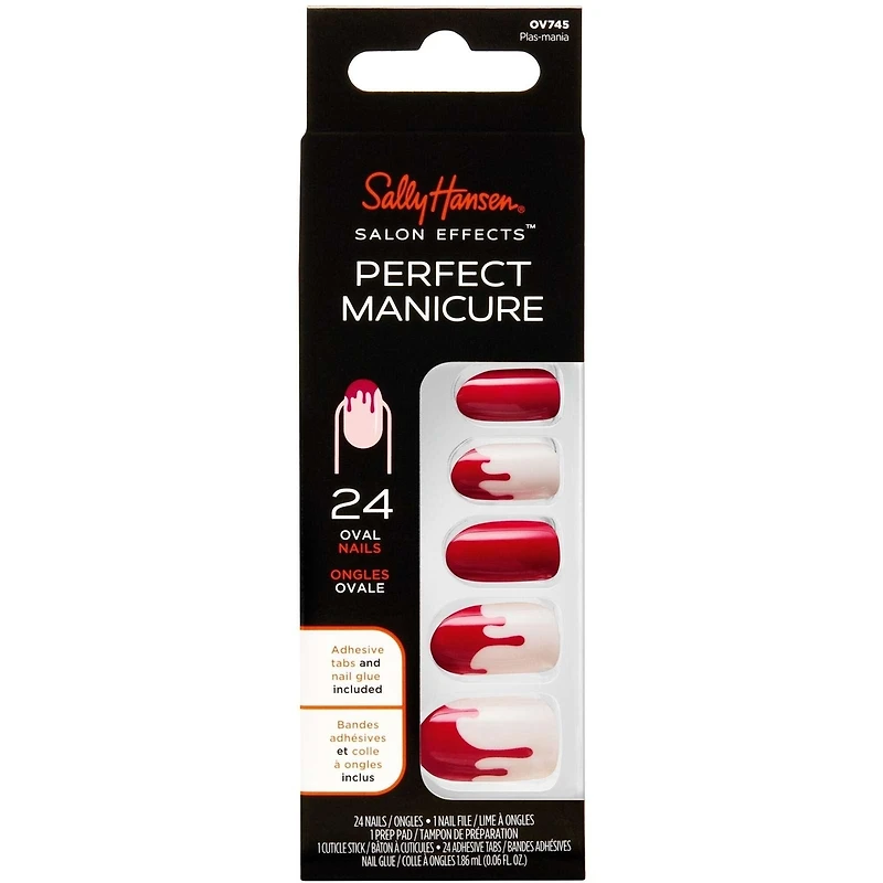 - <ul>|<li>Sally Hansen #1 nail brand in Canada*.</li>|<li>Instant manicure.</li>|<li>Longwearing, premium quality press-on nails.</li>|<li>Includes 24 nails, file, cuticle stick, prep pad, adhesive tabs & nail glue.</li>|<li>Available in a variety of shades and shapes.</li>|<li>*Nielsen $latest 52 wks W/E 10/07/2023 </li>