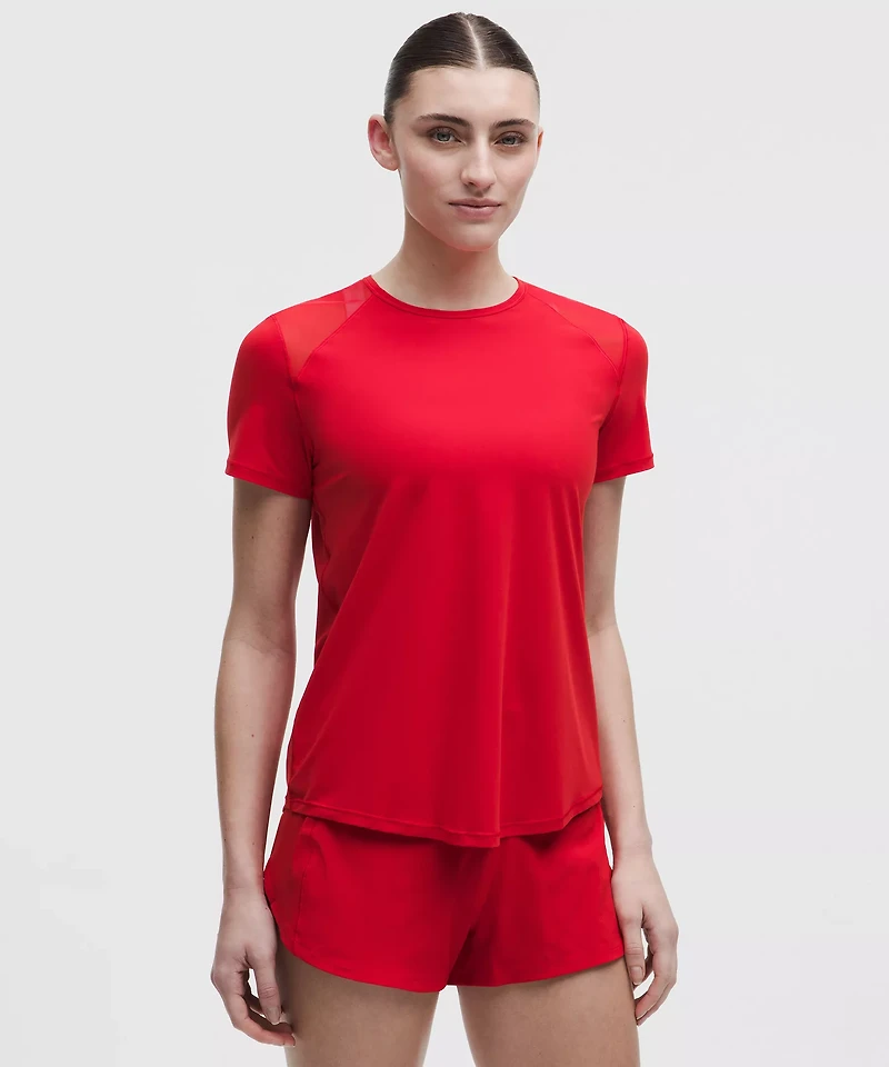 Sprints anyone? This lightweight tee has mesh fabric panels for breathability in sweaty situations.