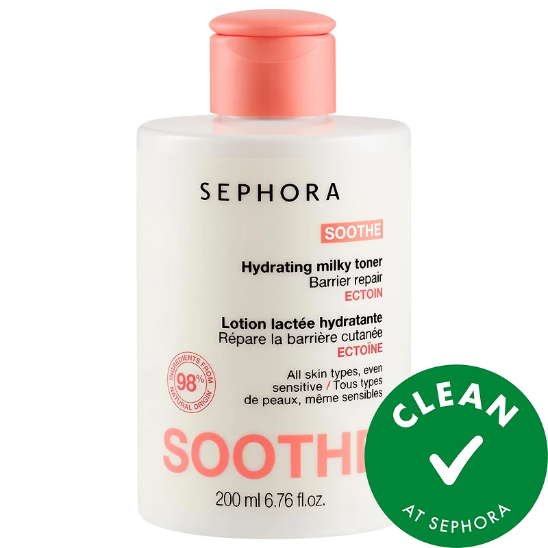 A Hydrating Milky Toner, infused with ectoin, protects and supports the skin barrier, while soothing dryness, tightness, and visible redness. Skin Type: Combination, Dry, and Oily Skincare Concerns: Dryness, Redness, and Uneven Texture Highlighted Ingredients: - Ectoin: Supports the skin barrier. What Else You Need to Know: The Hydrating Milky Toner is enriched with ectoin, and combats dryness, tightness, and the appearance of redness every day. From the first use, the formula quickly penetrates