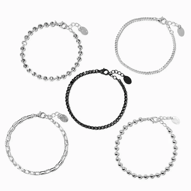 Silver-tone & Black Chain Bracelets - 5 Pack