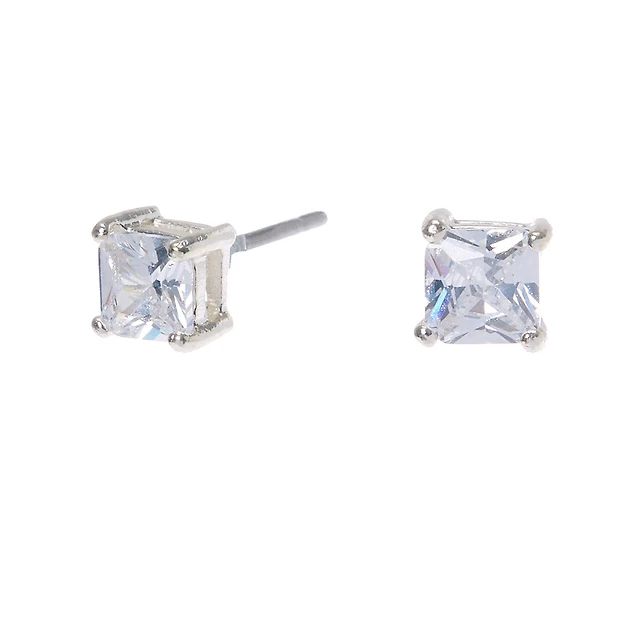 Silver-tone Cubic Zirconia 4mm Square Stud Earrings