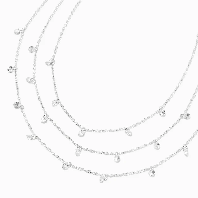 Silver-tone Cubic Zirconia Confetti Multi-Strand Necklace