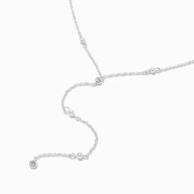 Silver-tone Cubic Zirconia Dainty Confetti Y-Neck Necklace