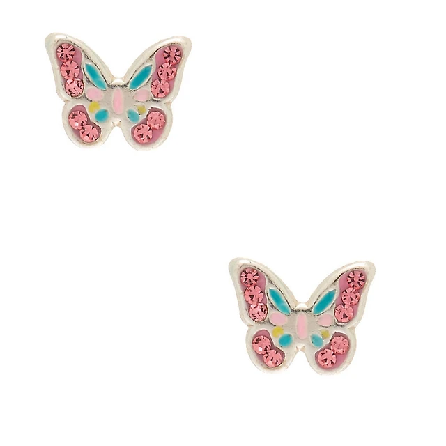 Sterling Silver Pastel Butterfly Stud Earrings