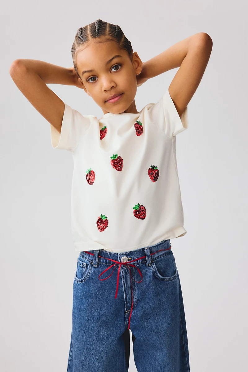 T-shirt in soft cotton jersey with motif at front. Round, ribbed neckline and short sleeves.