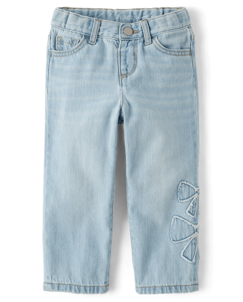 Toddler Girls Applique Bow Slouchy Jeans